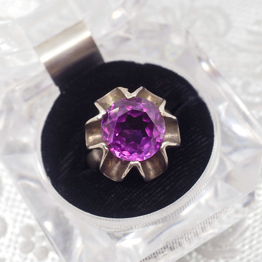 Vintage 1970s Purple Color Change Glass Flower Mexican Sterling Ring Size 7.75