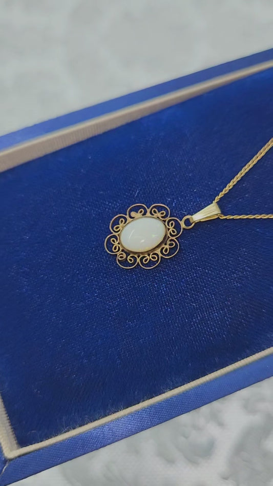Vintage 1970s CARLA Opal Pendant Gold Filled Scroll 18" Necklace