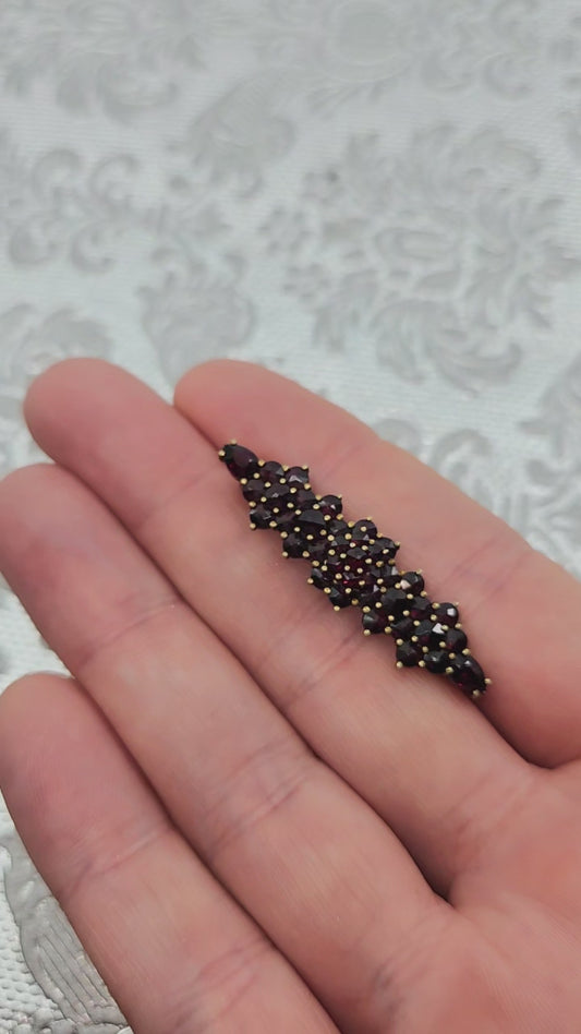 Vintage 1960s GRANAT TURNOV Red Bohemian Garnet Cluster Bar Pin Brooch