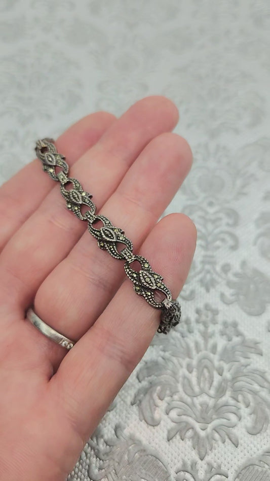 Vintage 1980s Marcasite and Sterling Silver 6.75" Link Bracelet