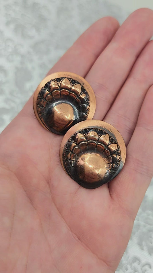 Vintage 1950s Copper Mid-Century Modernist Design Button Clip-On Earrings
