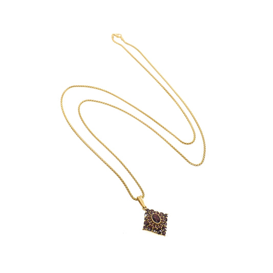 Vintage 1960s GRANAT TURNOV Bohemian Garnet Diamond-Shape Cluster Pendant 29" Necklace