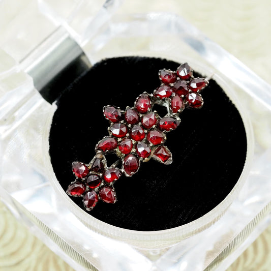 Antique 1850s Early Victorian Red Garnet, Seed Pearl and Gold Plate Brooch