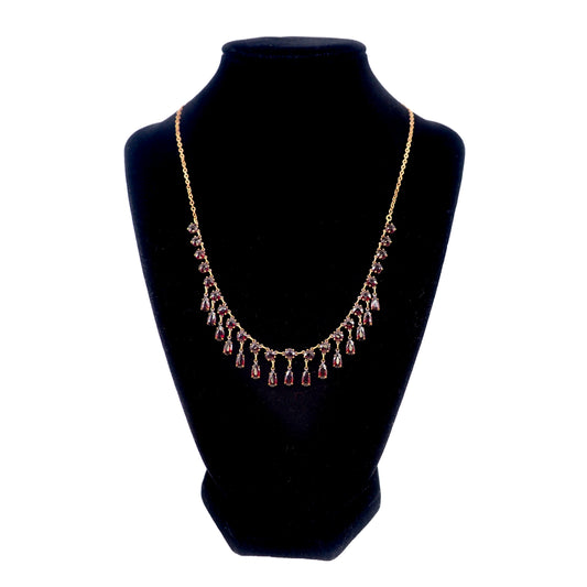 Vintage 1930s Red Bohemian Garnet Drop Choker Gilt 17" Necklace