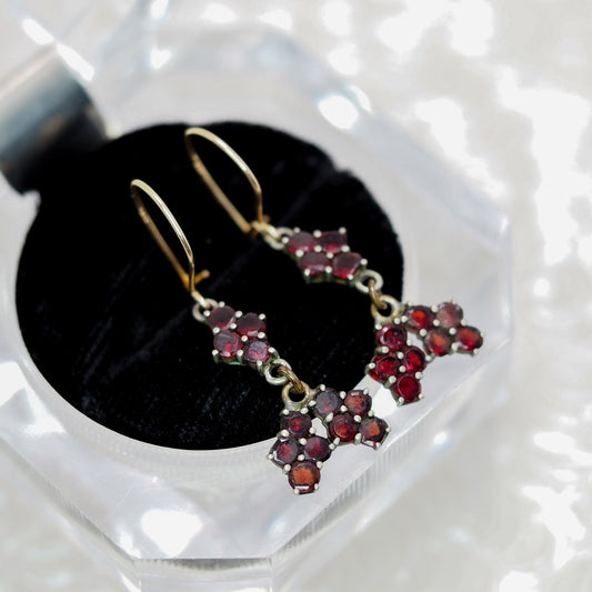 Antique 1880s Late Victorian Bohemian Garnet and Gilt Earrings Czech Drop Earrings