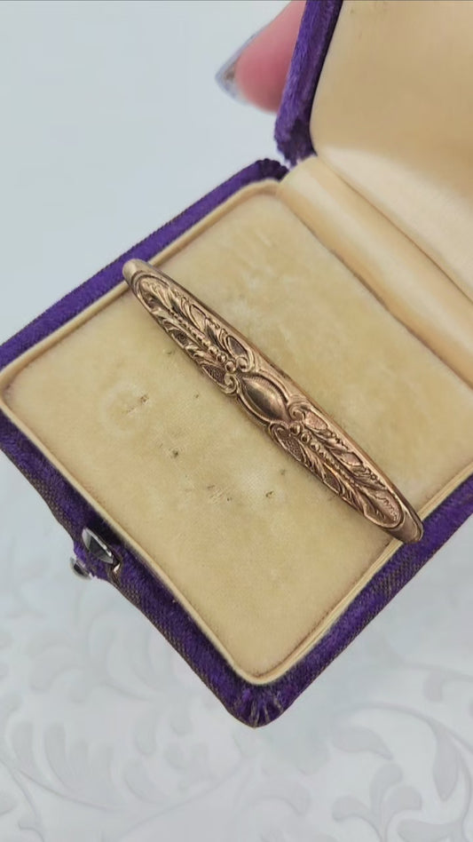 Antique 1900s Art Nouveau Gold Filled Repousse Bar Pin Brooch