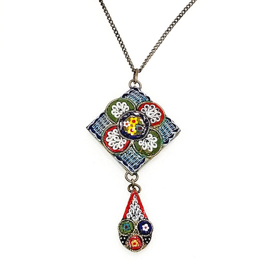 Antique 1920s Micro Mosaic Necklace, Clip On Earrings, and Brooch Set