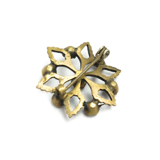 Antique 1900s Victorian Gold Filled and Imitation Pearl Snowflake Brooch