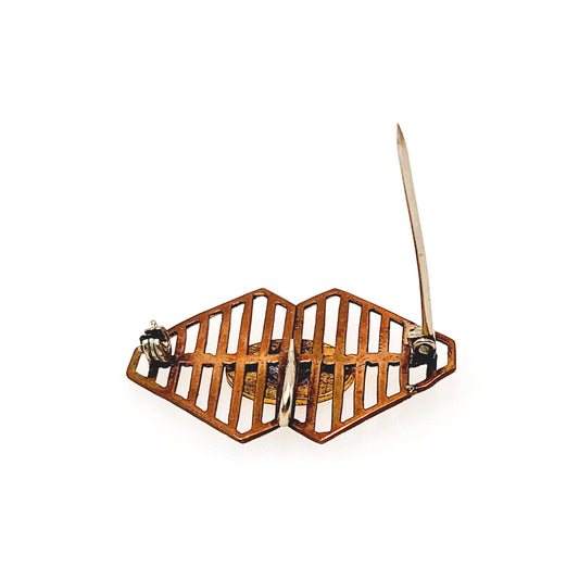 Antique 1920s Brown Goldstone Glass and Sterling Silver Unisex Bar Pin