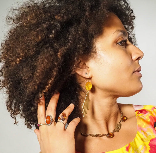 Antique 1920s Art Deco Orange Glass and Sterling Foliate Statement Ring Size 4.25