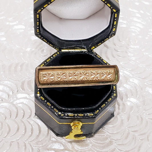 Antique 1900s Edwardian Yellow Gold Filled Flower Etched Small Bar Pin Brooch