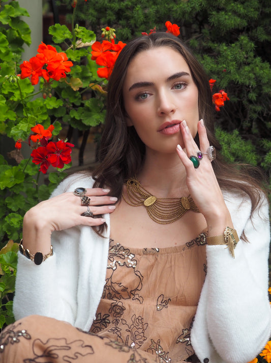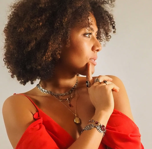 Antique 1850s Early-Victorian Red Glass Cabochon and Gilt Statement Large 7" Bracelet