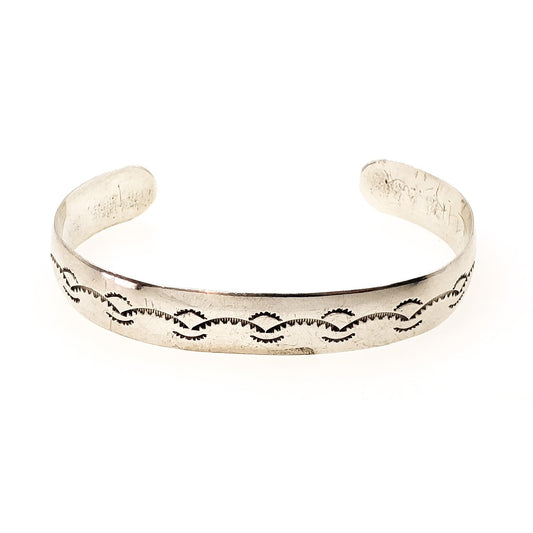 Vintage 1980s Sterling Silver Etched Southwestern Boho Sterling Cuff Bracelet