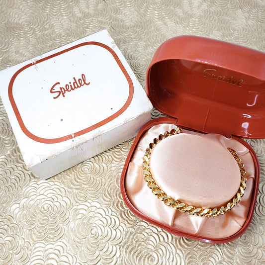 Vintage 1940s SPEIDEL Thick Gold Plate Textured Cuff 7" Bracelet with Original Box