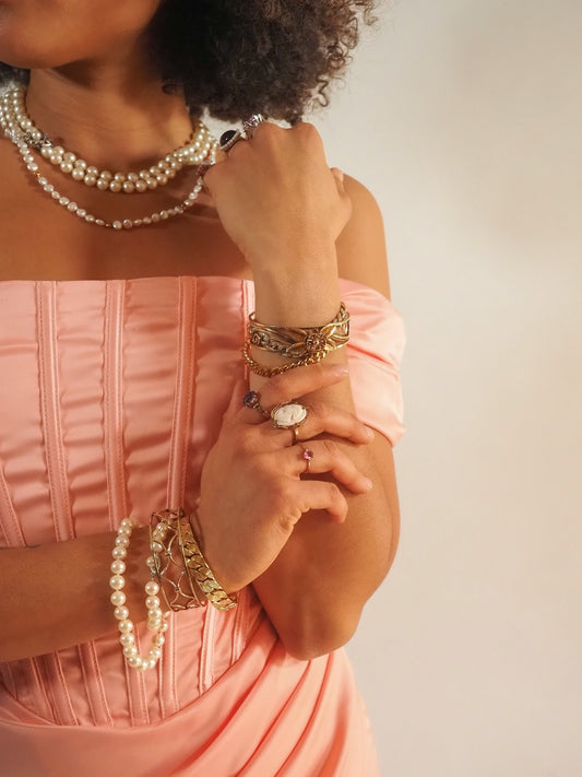 Vintage 1980s Rose and Yellow Gold Tone Metal Flower Rose Openwork Cuff 7" Bracelet
