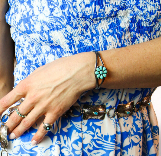 Vintage 1970s Imitation Turquoise and Sterling Petit Point Cuff Southwestern 7" Bracelet