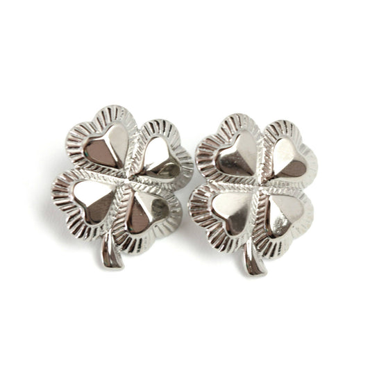 Vintage 1990s Four Leaf Clover Silver Tone Metal Pierced Earrings
