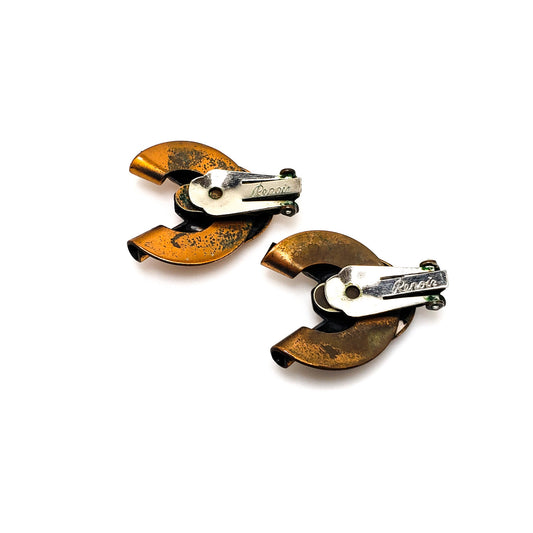 Vintage 1950s RENOIR Mid Century Modern Copper Clip On Earrings