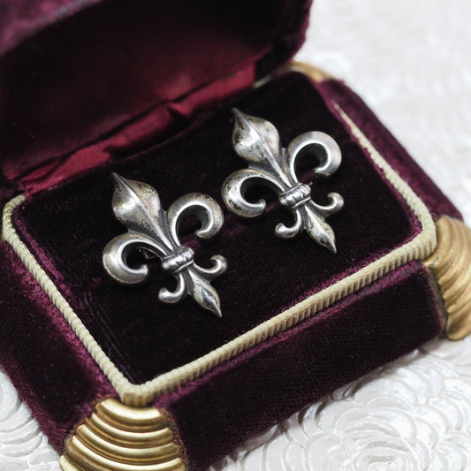 Vintage 1960s Sterling Silver Fleur-de-Lis Stud Pierced Earrings