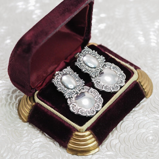 Vintage 1980s Sterling Silver Large Mirror Tag Repousse Statement Chunky Pierced Earrings