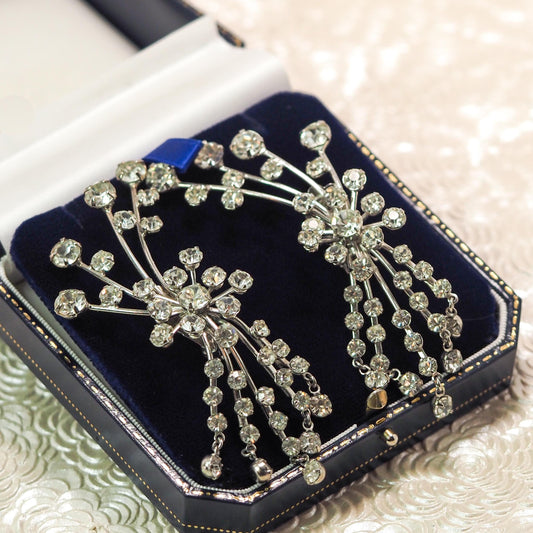 Vintage 1950s Clear Rhinestone and Silver Tone Statement Starburst Clip On Earrings