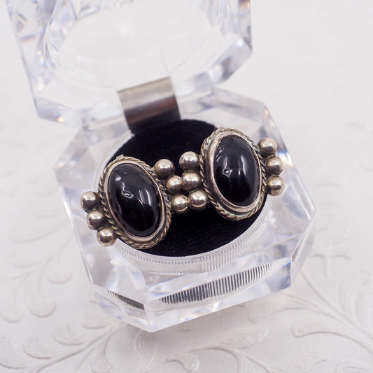 Vintage 1940s TAXCO Mexico Black Onyx and Sterling Silver Screw Back Earrings