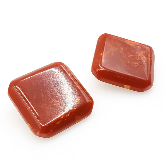 Vintage 1930s Red and Yellow Molted Mismatched Clip On Bakelite Statement Non Pierced Earrings