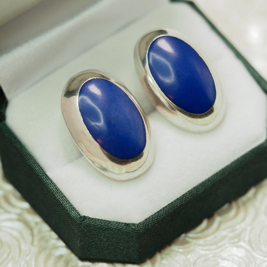 Vintage 1990s TAXCO Silver and Dyed Blue Jasper Mexico Sterling Oval Statement Earrings