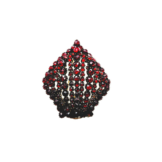 Antique 1890s Bohemian Garnet and Gilt Large Statement Crown Brooch & Pendant