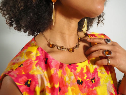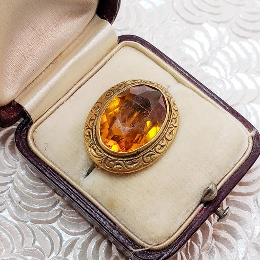 Antique 1920s Art Deco Orange Glass and Sterling Foliate Statement Ring Size 4.25