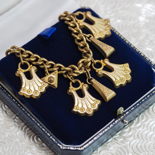 Antique 1890s Late Victorian Etruscan Revival Medallion Silver 6.5" Bracelet
