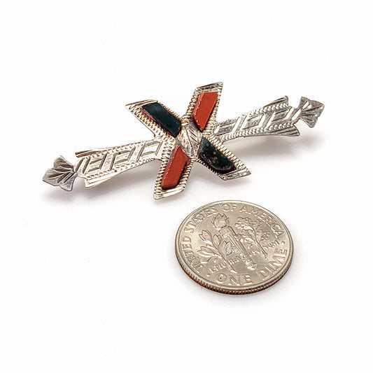 Antique 1900s Late Victorian Scottish Bloodstone, Jasper, Sterling Silver Brooch