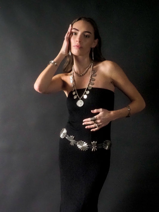 Antique 1920s Silver and Leather Native American Butterfly Concho Navajo 36" Belt