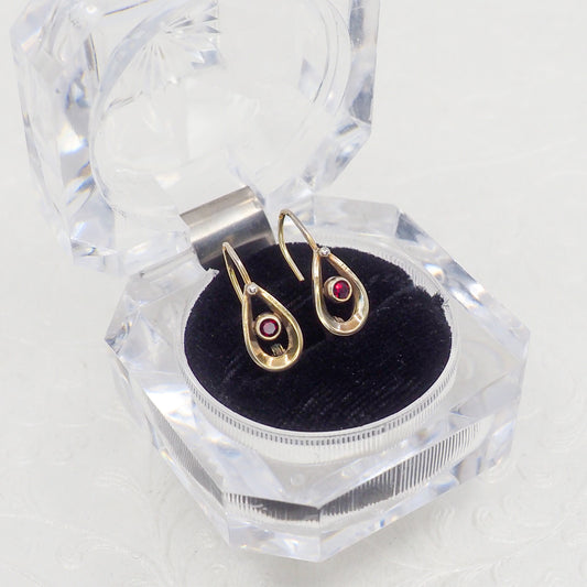 Vintage 1980s Bohemian Red Czech Garnet and 900 Silver Gold Wash Pierced Small Drop Earrings