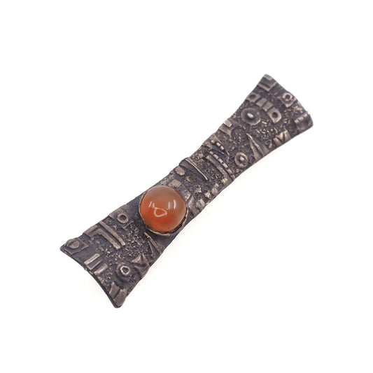 Vintage 1960s Silver and Orange Carnelian Tribal Geometric Unisex Brooch