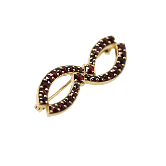 Vintage 1970s GRANAT TURNOV Bohemian Red Garnet and Gold Wash Bow Brooch