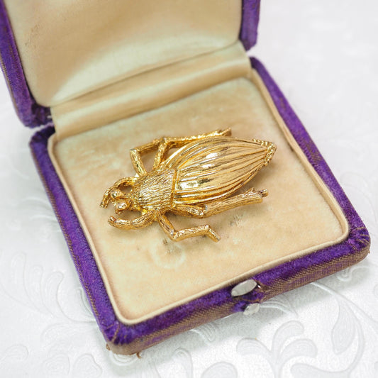 Vintage 1970s Scarab Beetle Chunky Large Gold Plate Bug Unisex Brooch