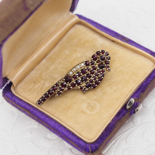 Vintage 1970s GRANAT TURNOV Bohemian Garnet, Seed Pearl, and Vermeil Bird Cut Animal Brooch