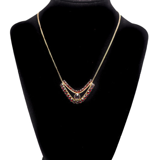 Vintage 1980s Czech Bohemian Red Garnet and Gold Wash Choker 15" Necklace