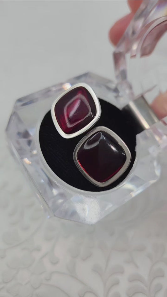Vintage 1960s SWANK Red Glass and Silver Plate Mid Century Unisex Cufflinks