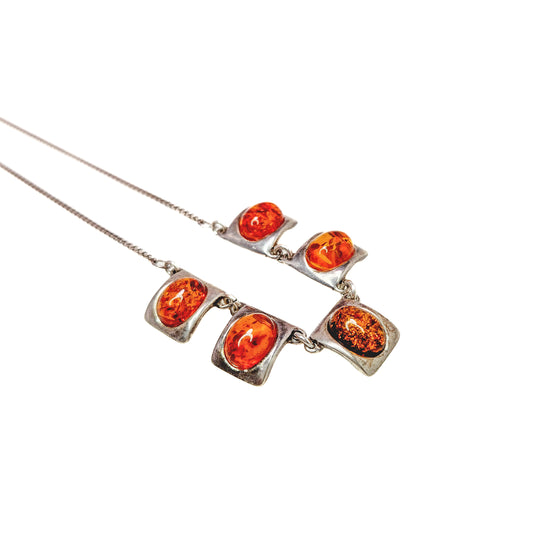 Vintage 1990s Sun-Spangled Amber and Sterling Silver Bib Choker 17.5" Necklace
