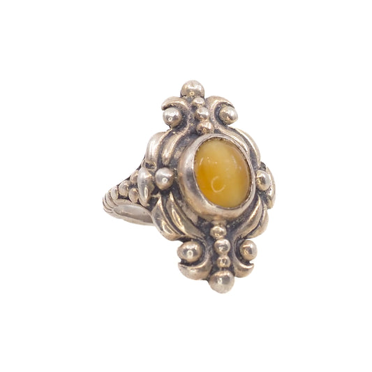 Vintage 1980s Tiger's-Eye and Sterling Silver Cabochon Southwestern Ring Size 5.25