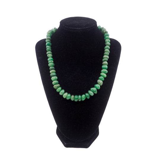 Vintage 1980s Green Aventurine Quartz Beads and Silver Adjustable Choker 16-18" Necklace