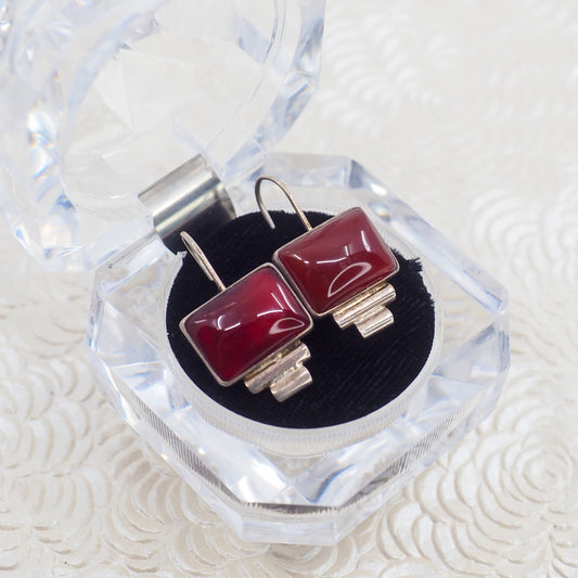 Vintage 90s Sterling Silver Red Carnelian Drop Earrings: Southwest Geometric Design