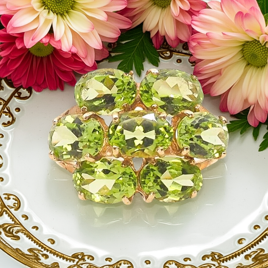 Vintage 1980s Peridot, Yellow Gold Cluster Statement Cocktail Ring Size 5.75