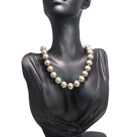 Vintage 1980s Navajo Sterling Silver Hollow Bead Choker Statement 15" Necklace