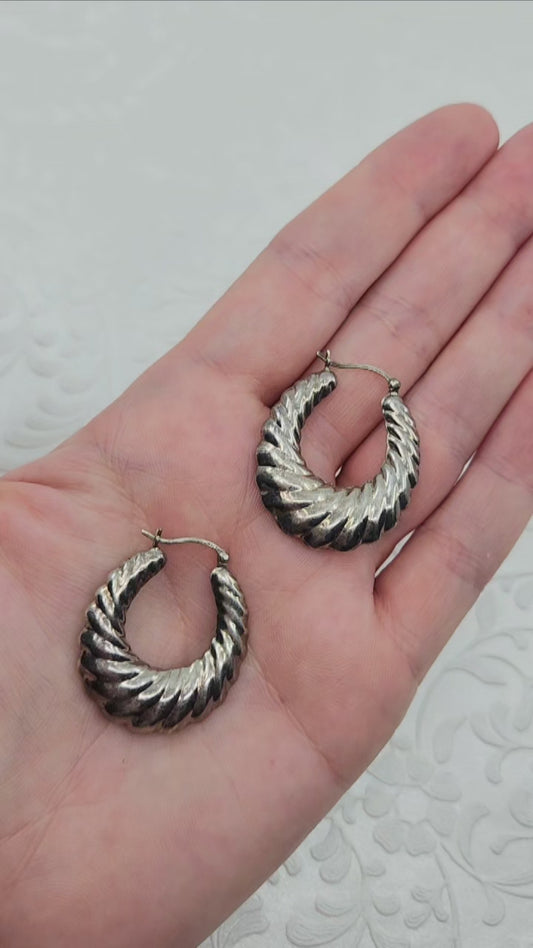 Vintage 1980s Sterling Silver Scalloped Hollow Hoop Pierced Earrings