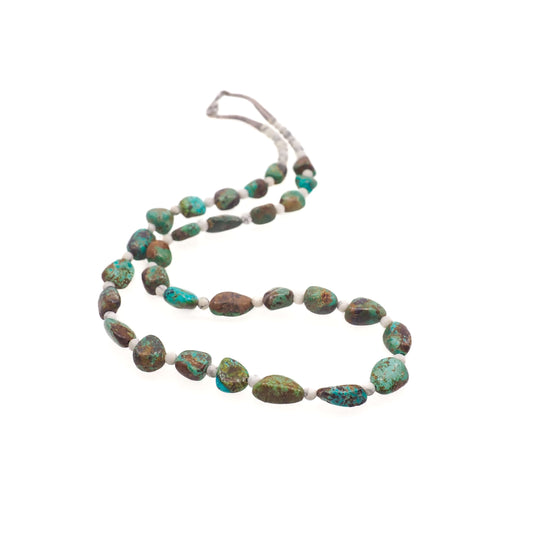 Vintage 1970s Blue and Green Turquoise Nugget, Howlite, and Sterling Bead Navajo 23" Necklace