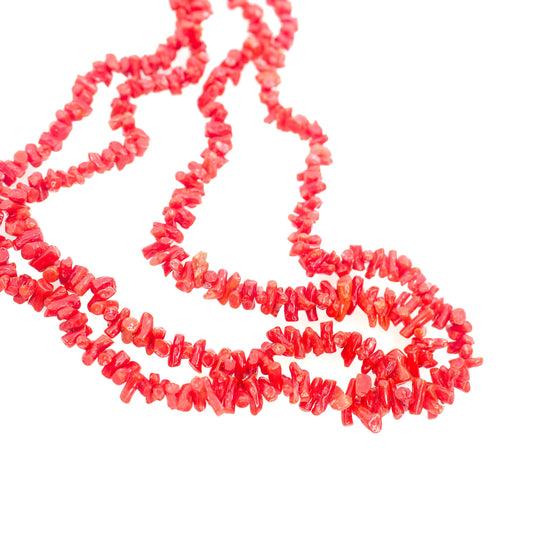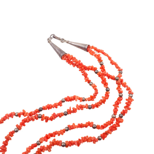 Vintage 1970s Navajo Branch Coral and Sterling Silver Double Strand Statement 25" Necklace