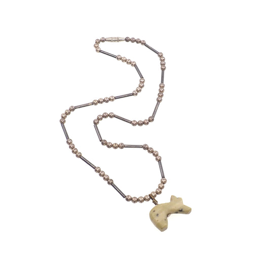 Vintage 1970s Zuni Sterling Silver Bird Fetish Single Strand 26.5" Necklace